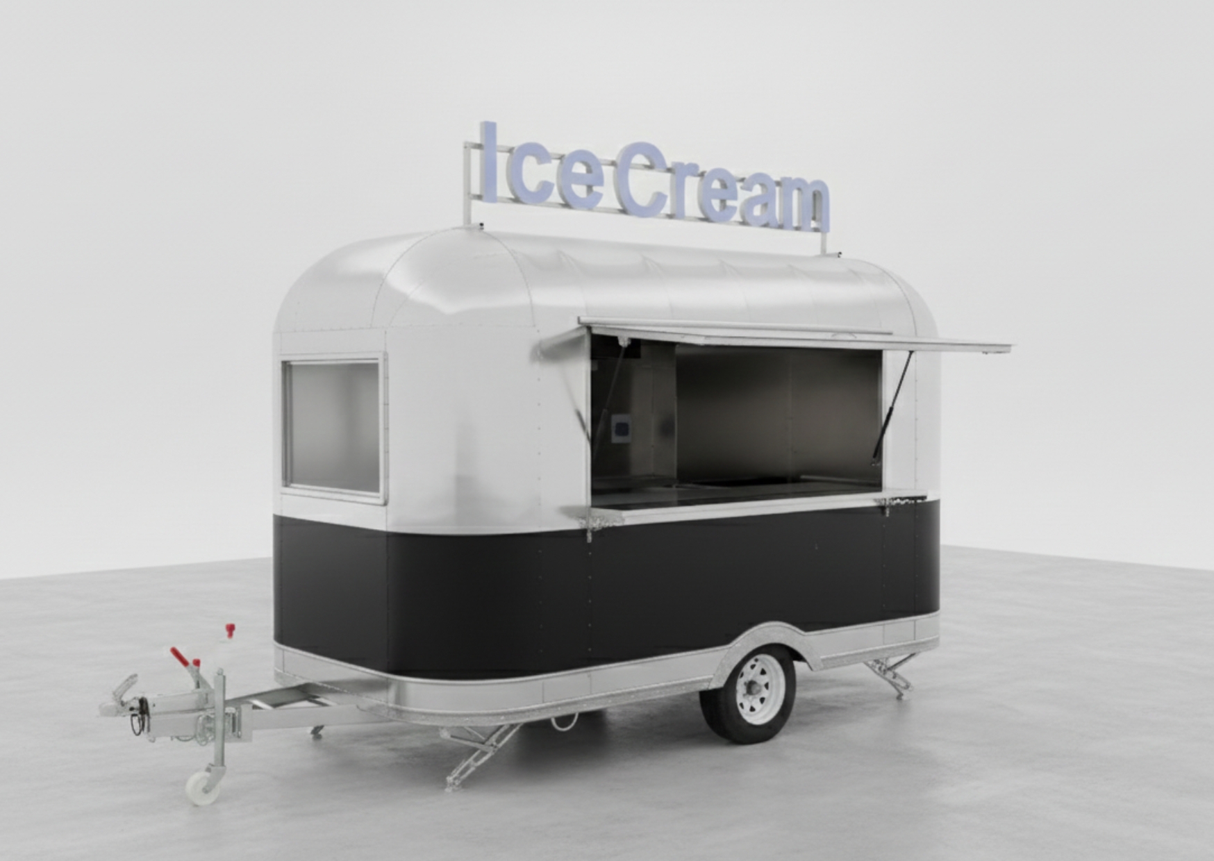 Nowoczesna przyczepa gastronomiczna zaprojektowana z myślą o sprzedaży lodów w punktach mobilnych, na eventach oraz w sezonowej i całorocznej działalności. Przemyślany układ wnętrza zapewnia komfort pracy i spełnia wymogi sanitarne.